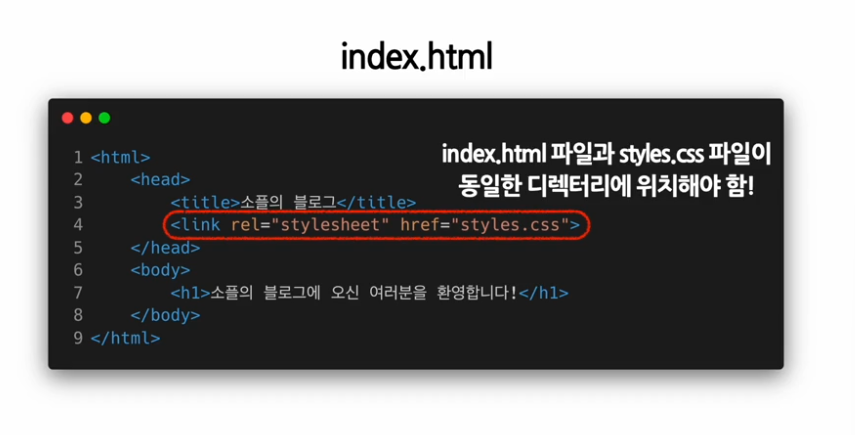 html과 css 파일은 동일한 디렉터리(같은 폴더) 안에 있어야 함!