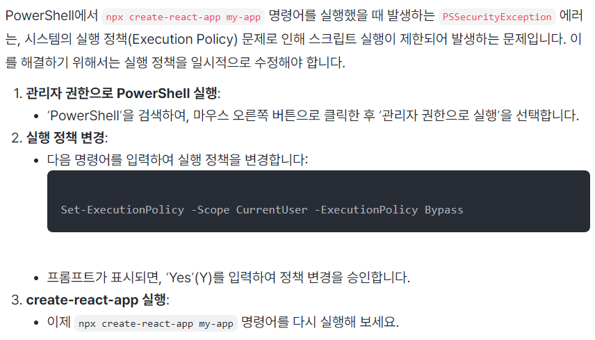 - Terminal 에서 create-react-app 오류 (보안오류 PSSecurityexception)