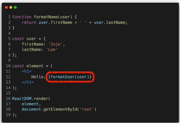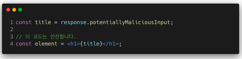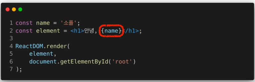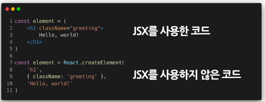- jsx는 html의 <h1>,</h1>을 사용하고 있음.