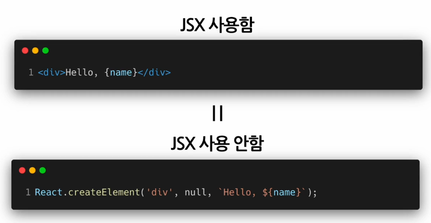 하지만 jsx 사용하면 코드 간결+ 생산성,가독성 높아짐.