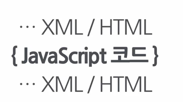 1) 기본: HTML 사용하다가 JavaScript코드 사용하고 싶으면 중괄호!{}