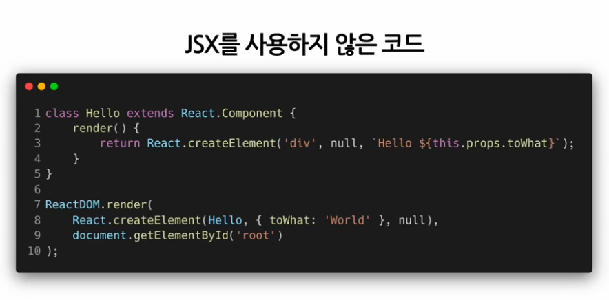 즉, react에서 jsx를 쓰는 것이 필수는 아님!