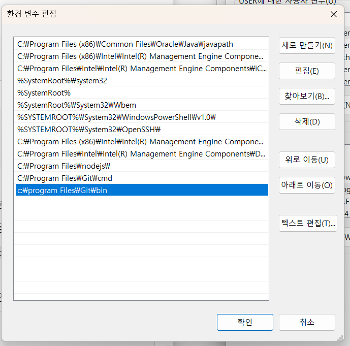 : 환경 변수에 git 추가 안된 것