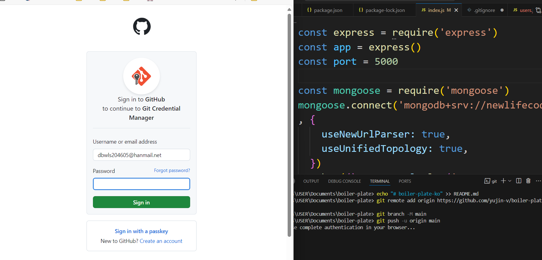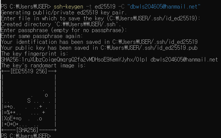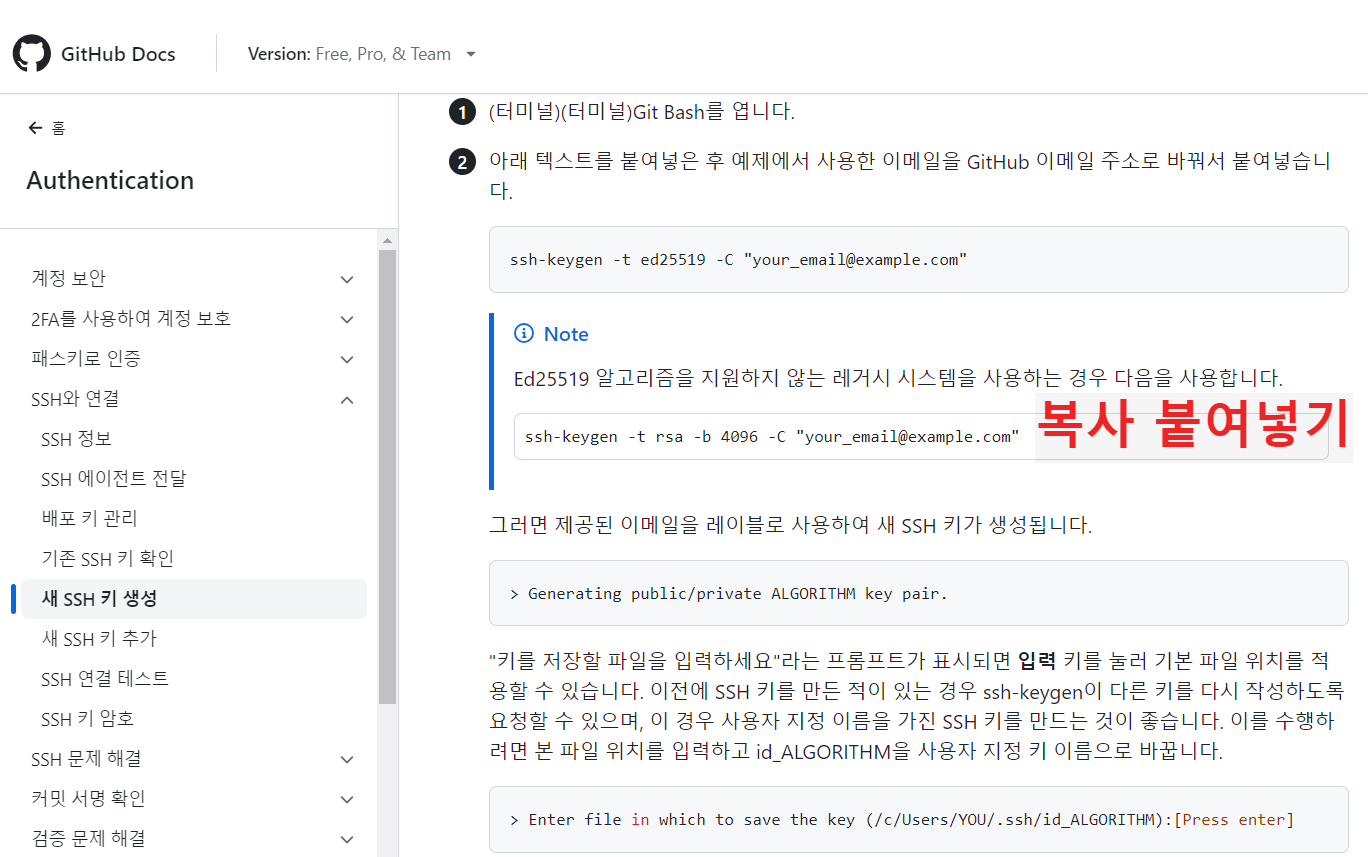 6. 터미널 열고 그대로 복사 붙여넣기(대신, 이메일은 github이메일로!)