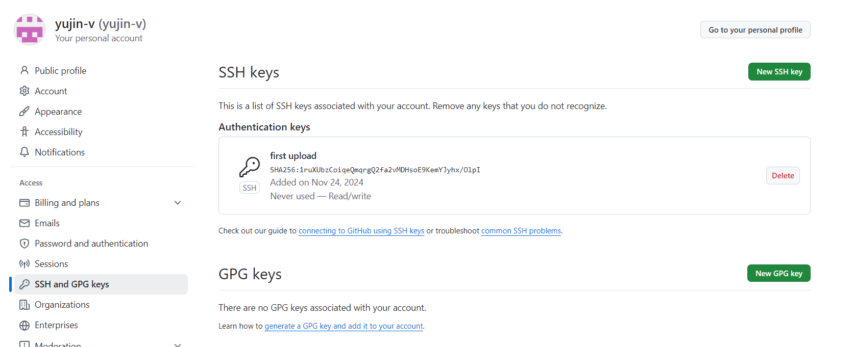 5. id_rsa , id_rsa.pub이 뜬다면 설정되어 있는 것 ! 아니라면 google에 git ssh 입력