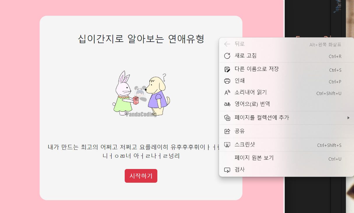 | [html] 십이간지로 알아보는 연애유형 사이트 project 초안 (1) | 2024.11.24 |