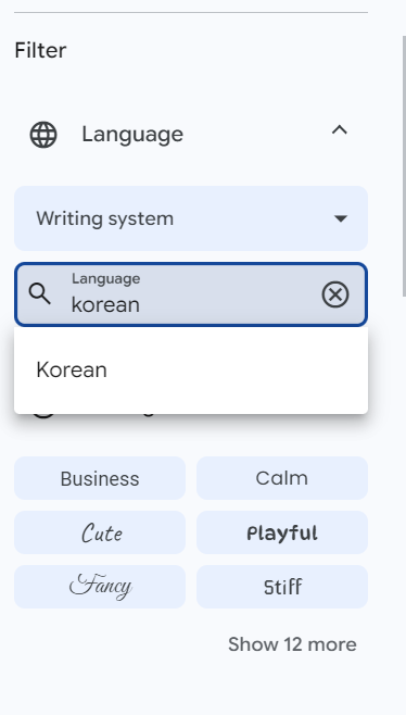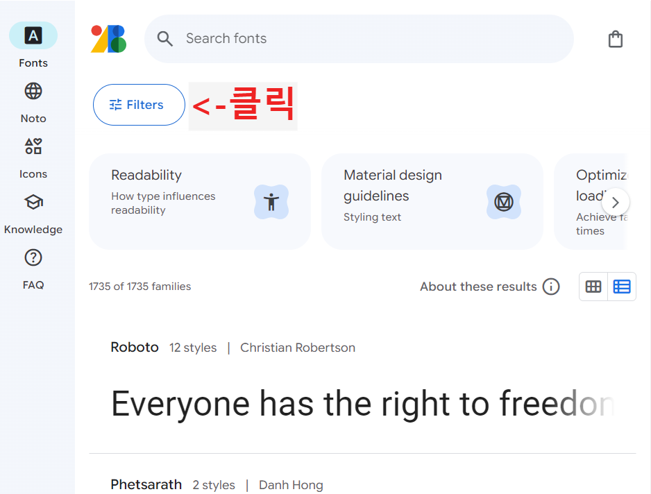 1. 구글 폰트에 접속하고 Filters를 클릭