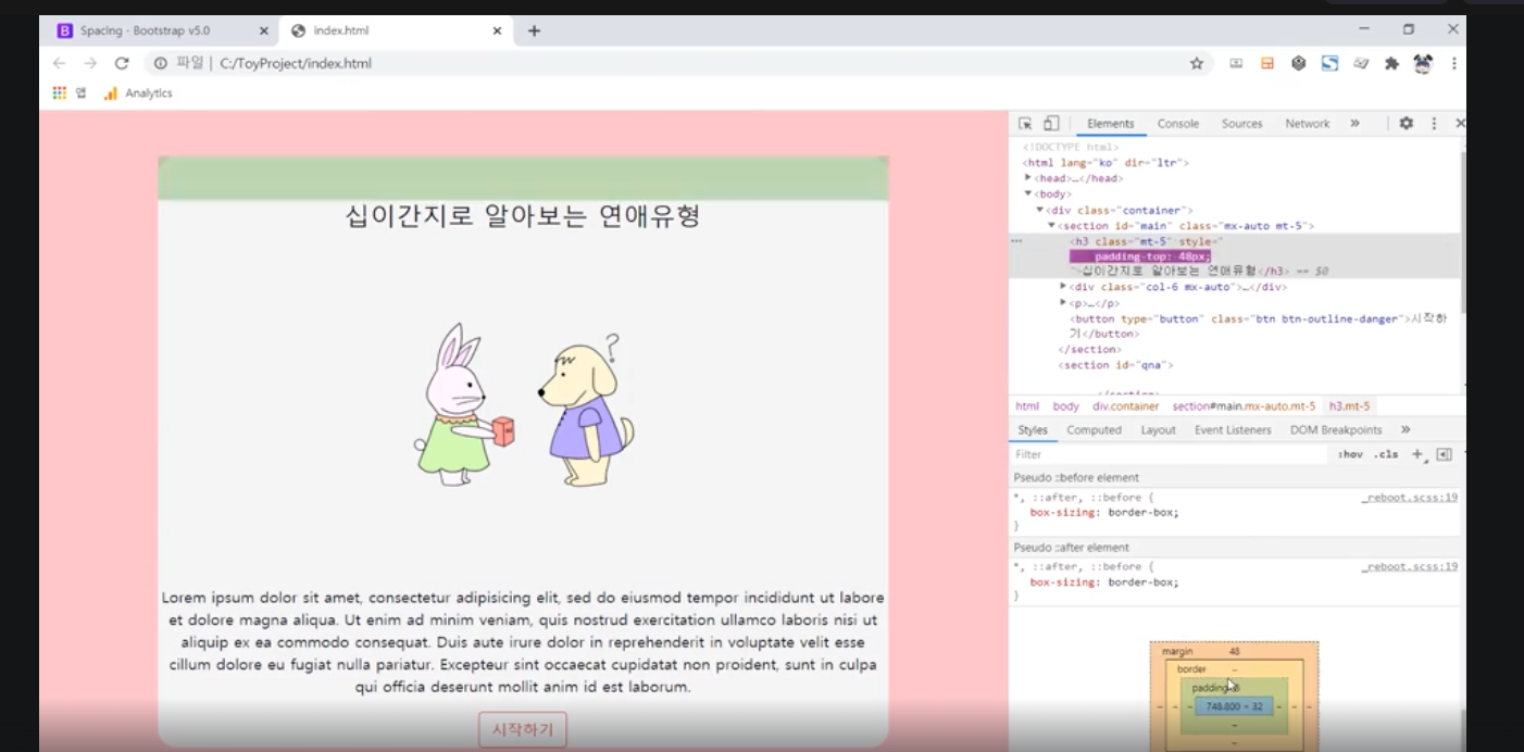 | [html] 십이간지로 알아보는 연애유형 사이트 project 초안 (1) | 2024.11.24 |
