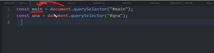 // main변수= 문서 내 #main을 찾아서 가지고 와라