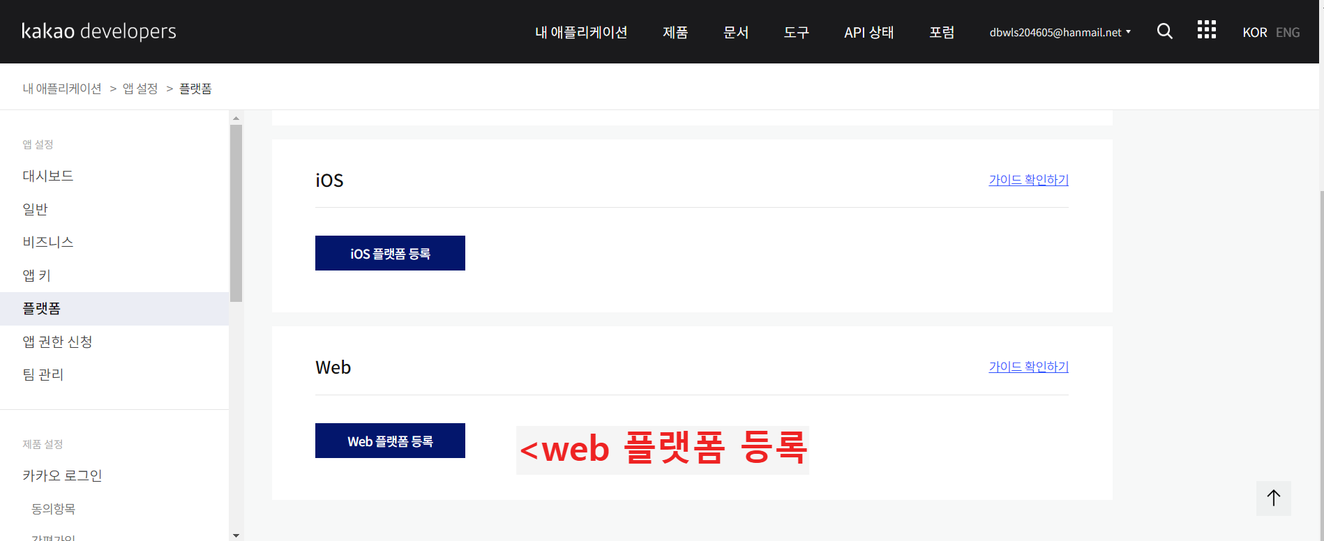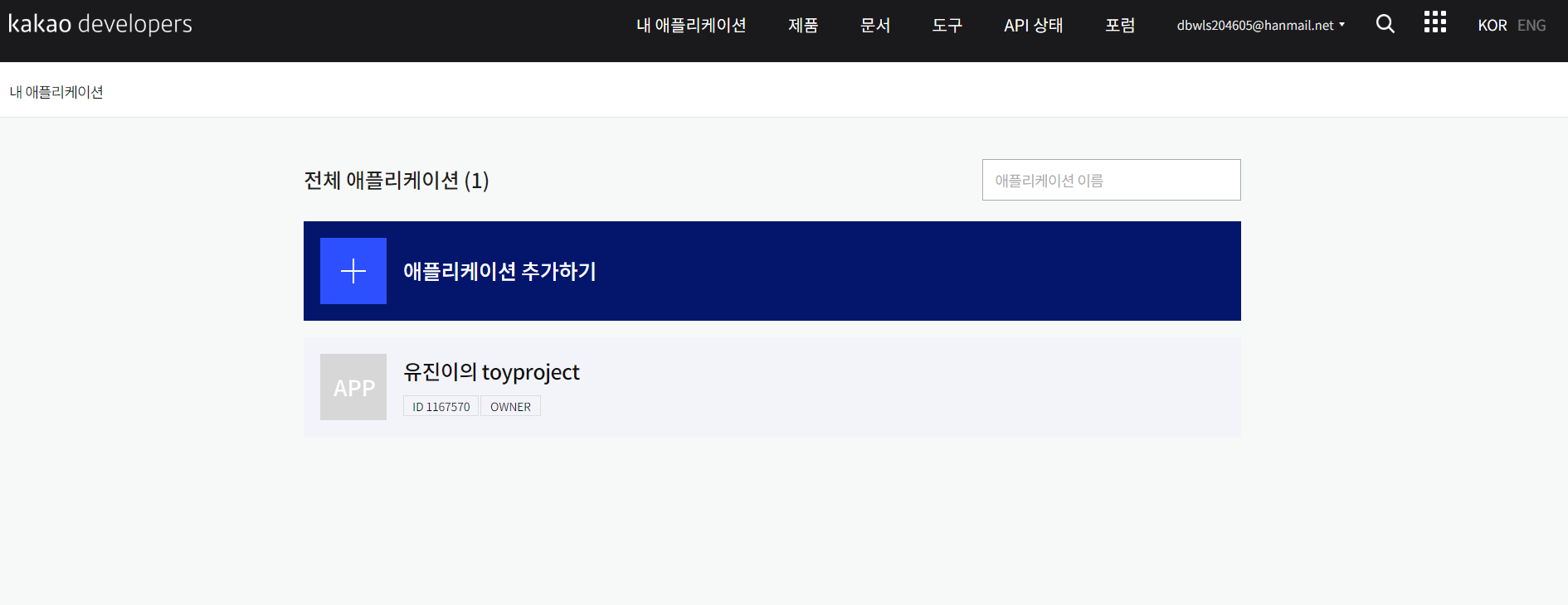 이를 확인하기 위해서, 다시 kakao developers로 돌아가서