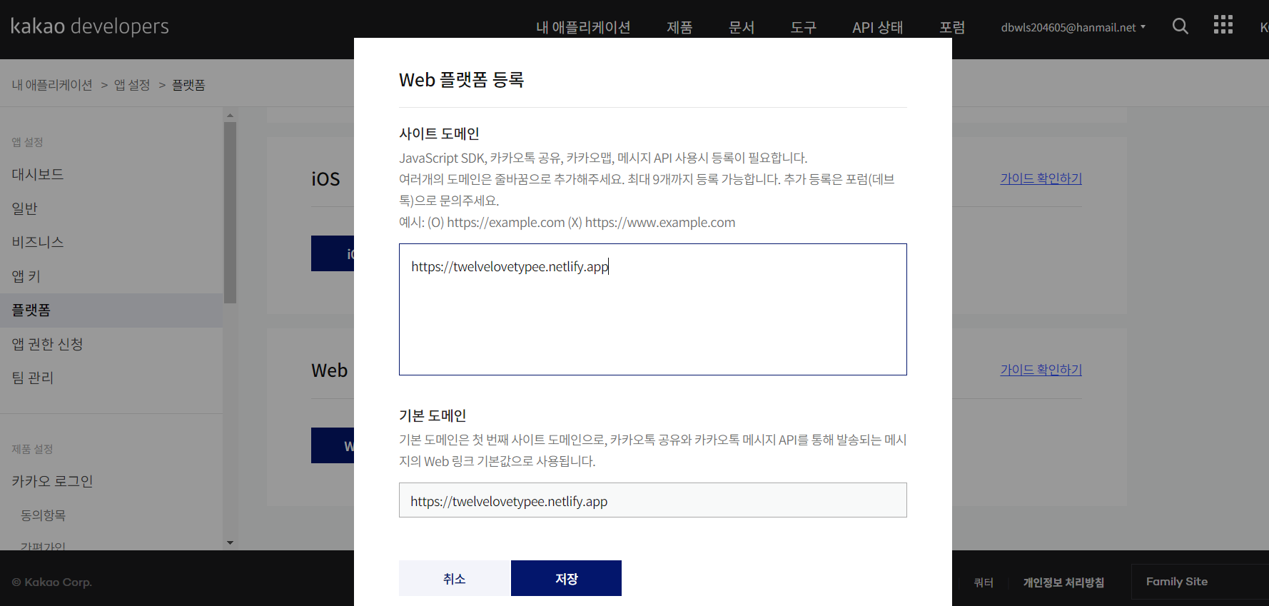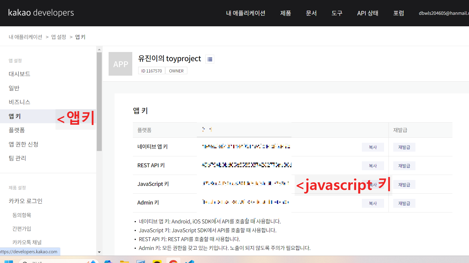이를 확인하기 위해서, 다시 kakao developers로 돌아가서