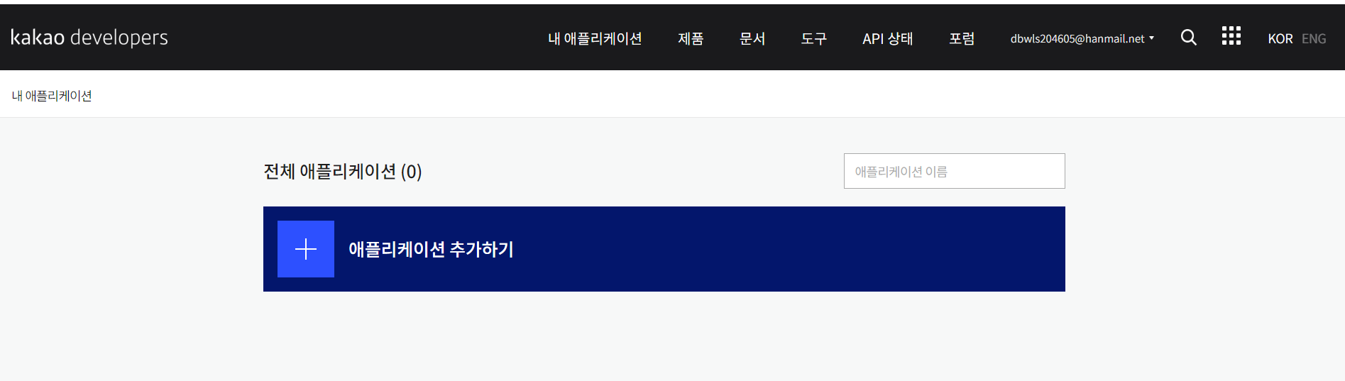 1. 상단 바의 내 애플리케이션 클릭 -> 애플리케이션 추가하기